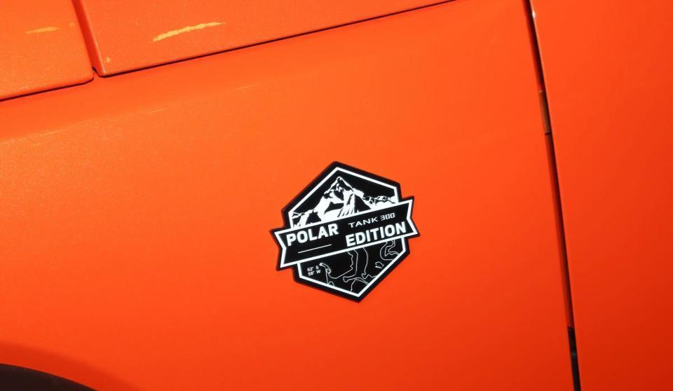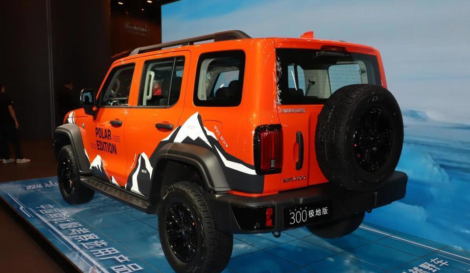 侧面,前后的轮眉以及侧裙做了调整金来源,独有的拉花设计更能契合上新车的定位,另外在专业性上,新车出厂就配备了越野轮胎,搭配炭黑轮毂,整个力量感得到了保证。目前官方并没有给出这款极地版的尺寸,但从新车的影像资料上看,与现款差别不大,或者直白点说,完全一样。