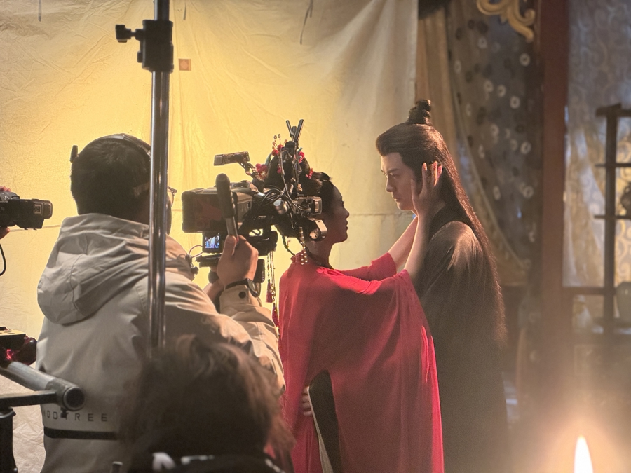 横店圆明新园内,一部微短剧正在进行拍摄。 于量 摄