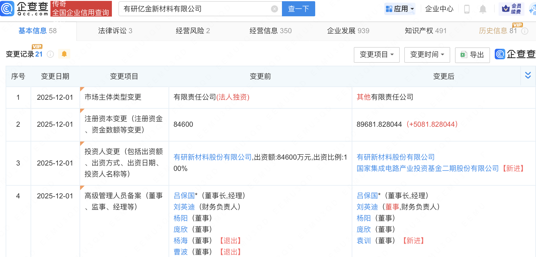近日,有研亿金新材料有限公司发生工商变更,新增国家集成电路产业投资基金二期股份有限公司为股东,同时注册资本增至8.97亿元。此前,该公司由有研新材(600206)100%持股。企查查信息显示,该公司成立于2000年,经营范围包含:有色金属材料及制品的销售;进出口业务;稀有及贵金属的技术咨询、技术开发、技术转让、技术服务等。据其官网德益配资,有研亿金专注于高纯薄膜材料、稀贵金属功能材料和铂族金属材料的研发、生产与销售。